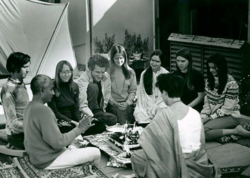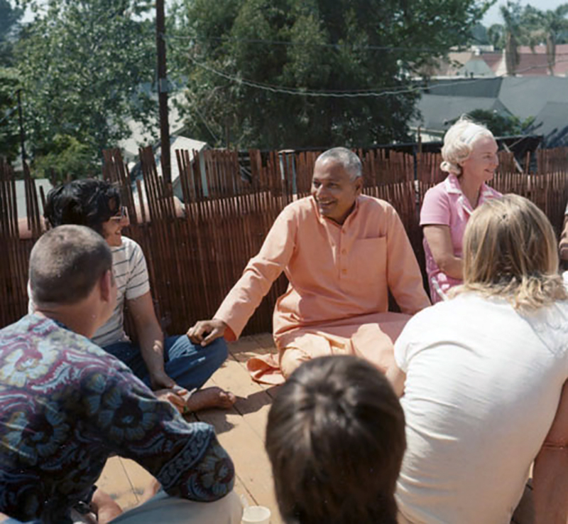 See full screen imageGiving a talk on yoga to students (and making them smile) on the back deck of the Sivananda Yoga & Vedanta Centre on Larchmont Blvd. in Hollwood, California in the early 1970s.