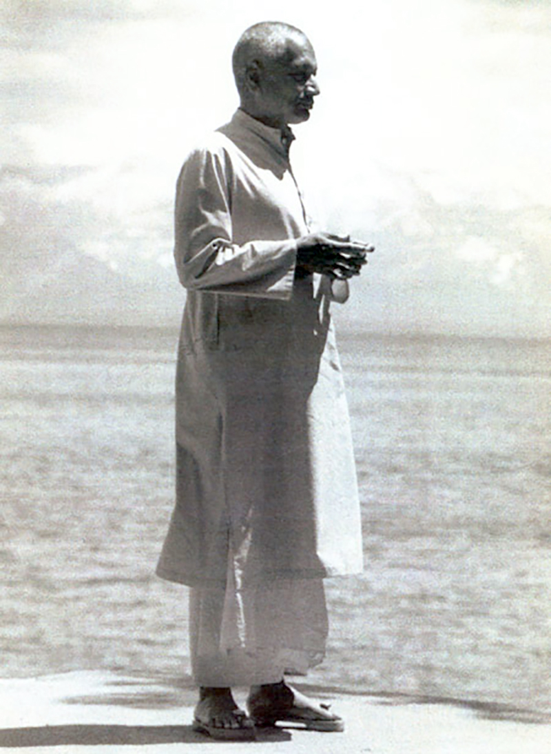 See full screen imageWhen asked for a photograph for the cover of the paperback version of the book "Yoga," published by Chiltern Yoga Trust. Swami Venkatesananda agreed to have a formal photograph taken, and asked Joan Hyman if she would agree to take this photograph. Although Swami Venkatesananda agreed to pose for the camera many times, this still remains one of the few formal portraits that we have of Swami Venkatesananda sitting in meditation with his eyes open. (Photograph By Joan K. Hyman April 1972)