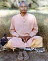 See full screen imageThis well known photo of Swami Venkatesananda, taken at a yoga retreat (advance) in Grass Valley, California at Swami Vishnu's Yoga Farm is perhaps best known as the photograph on the cover of Swami Venkatesananda's book entitled "Vigilance." It's one of many engaging photos of Swami Venkatesananda taken by Ganga White, some of which appear here in this album.