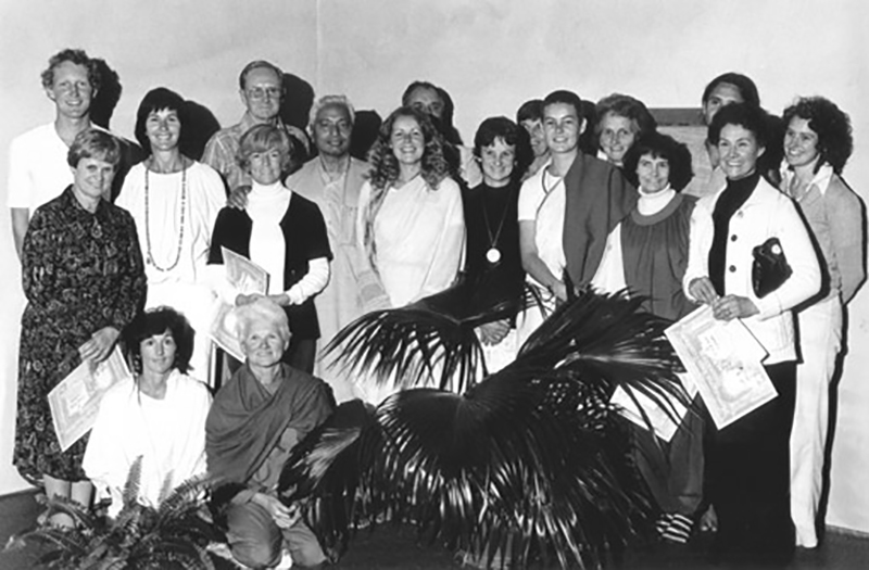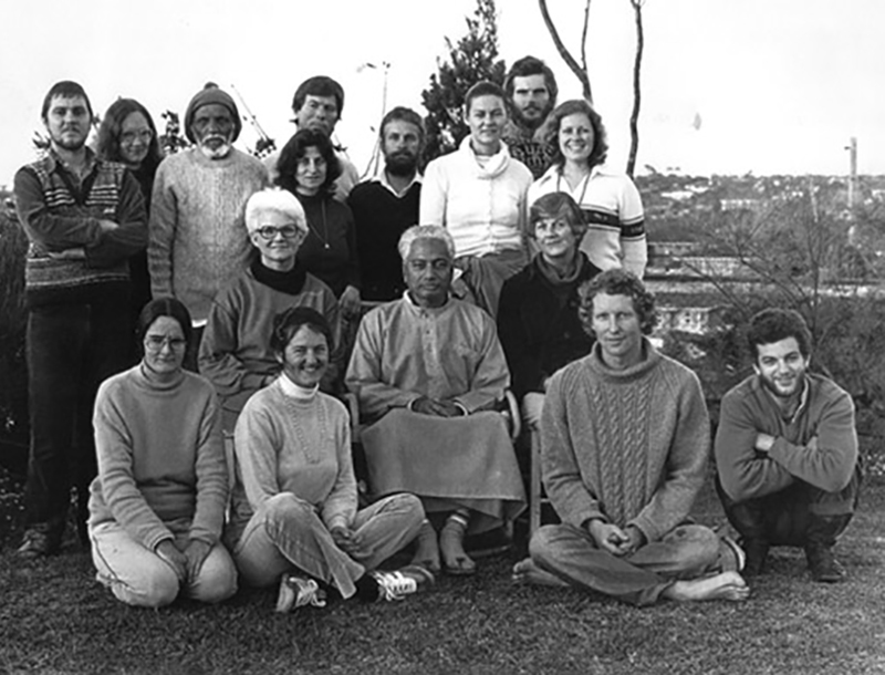 See full screen imageSwami Venkatesananda a group of friends in Fremantle. From from left to right standing: Ian, Padma, Dadaji Patel, Erica (Ramani), Peter, Fluff, Janaki, Mark & Hamsa, and from left seated; Jaya, Lakshmi, Shobha, Swamiji, Satya, David & Horst.